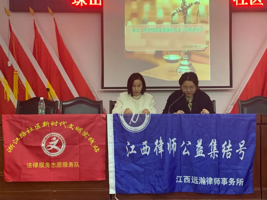 江西远瀚律师事务所组织女律师们送法进社区。通过案例解说、法条阐释的方式,详细讲解《中华人民共和国反家庭暴力法》和《中华人民共和国妇女权益保障法》,大量鲜活的法治案例为社区妇女代表们送来了一堂生动的法律知识讲座。
